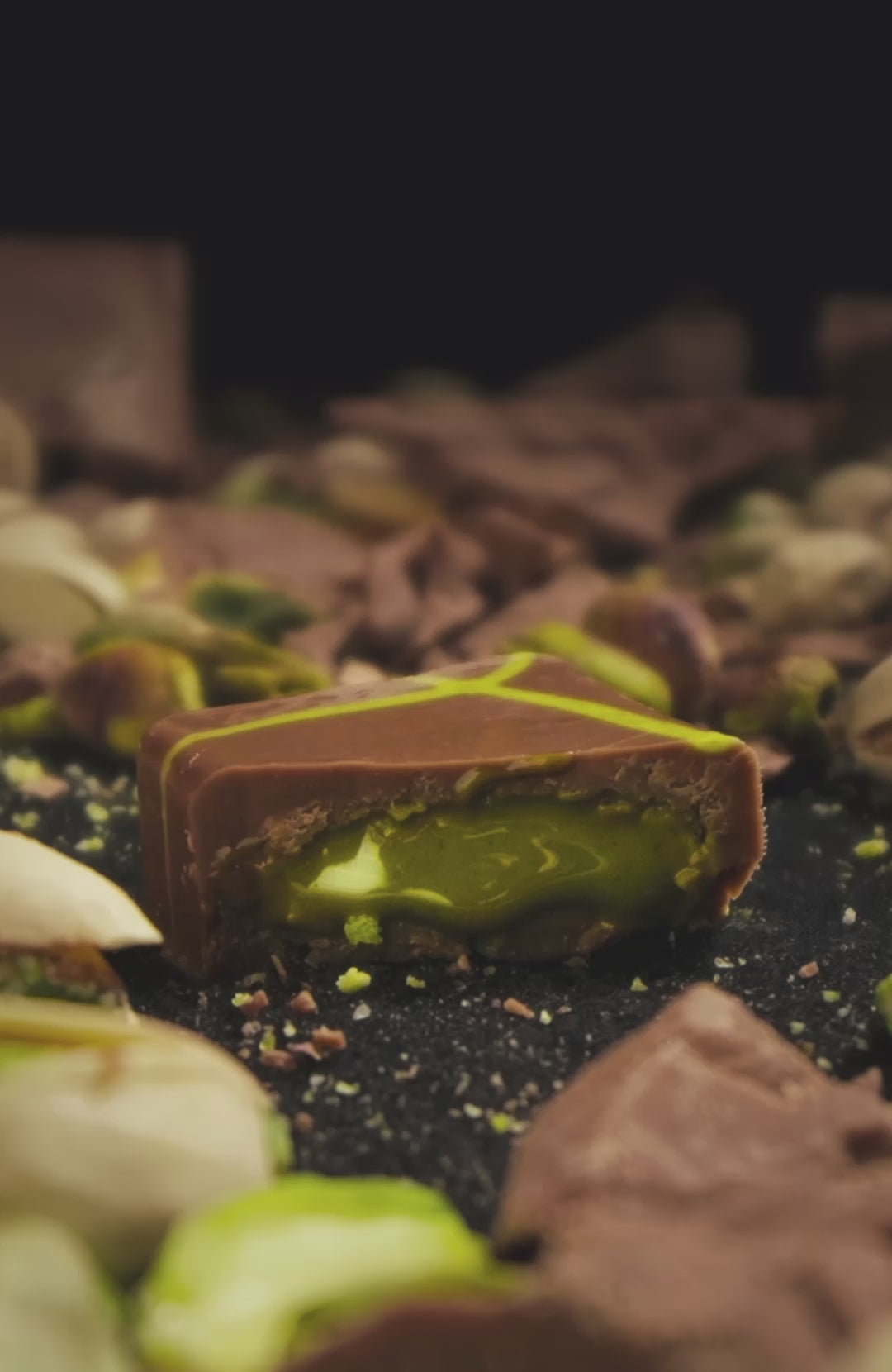 Probeer de heerlijkste pistachecrème gemengd met biologische, gemalen, knapperige maïs omhuld met premium melkchocolade. Net als alle andere chocolade die we produceren, is ook deze noviteit uiteraard geheel natuurlijk, zonder gebruik van kunstmatige geur-, zoet- en kleurstoffen.