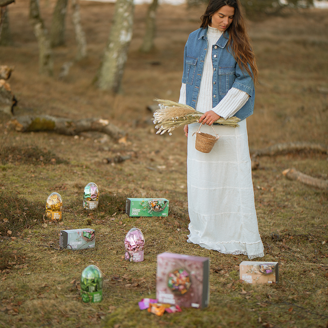 Onze vakkundige chocolatiers hebben een betoverende voorjaarscollectie samengesteld, bestaande uit esthetische chocoladedozen geproduceerd met de beste ingrediënten uit de natuur. Pasen wordt afgesloten met het grootste nieuws van het jaar: 'The Eggs'. Met vier verschillende designs en smaakcombinaties kun je het perfecte paasei vinden voor iemand die Deens geproduceerde kwaliteitschocolade waardeert.
