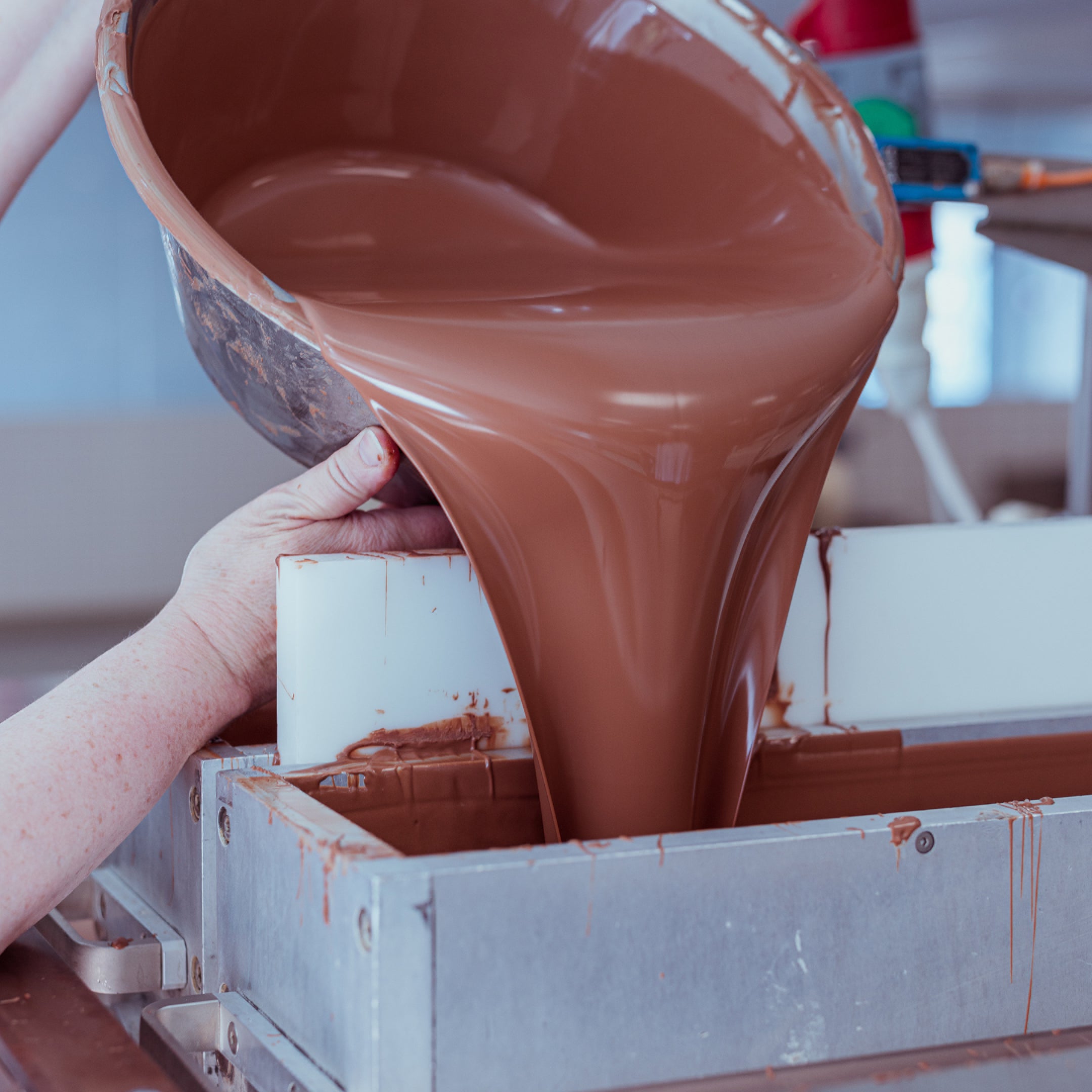 Sommige dingen veranderen nooit. Hier in de fabriek mengen we onze chocolademengsels nog steeds met de hand en goede bovenarmen. We wegen elk afzonderlijk ingrediënt zorgvuldig af in kleine kommen - niet te veel, niet te weinig. Waarom? Ja, we denken dat we de juiste balans tussen natuurlijke ingrediënten en premium chocolade beter kunnen vinden als we het ambacht in de hand hebben en het proces in de gaten houden - in plaats van alleen maar op een knop te drukken. We zijn detailgericht, geeky en doen er alles aan. En we geloven eigenlijk dat ons vakmanschap helpt om de eenvoudige, authentieke en natuurlijke ervaring te creëren waar we elke dag naar streven.